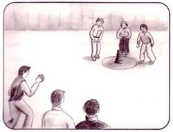 در این بازی یک گروه سعی می کند از فاصله حدود ده متری با دمپایی هدف را که ستونی از چند سنگ صاف روی هم است فرو بریزد. اگر دمپایی پس از سه بار به هدف نخورد امتیاز از دست می دهند و جای دو تیم عوض می شود. اما در صورتی که ستون سنگی فرو بریزد تیم دریافت کننده دمپایی را برداشته و هر کسی را که از تیم حریف بزنند از بازی خارج می شود و اگر همه را بزنند امتیاز می گیرند. تیم پرتاب کننده هم باید به محل سنگ ها برگردند و همه را مجددا روی هم بچینند تا یک امتیاز بگیرند. در این بازی تیم پرتاب کننده باید کمترین تعداد سنگ را بریزند تا زمان مورد نیاز برای چیدن مجدد به حداقل برسد. وقتی تیم پرتاب کننده همه سنگها را روی چیدند با گفتن کلمه فیتال برد خود را اعلام می کنند.